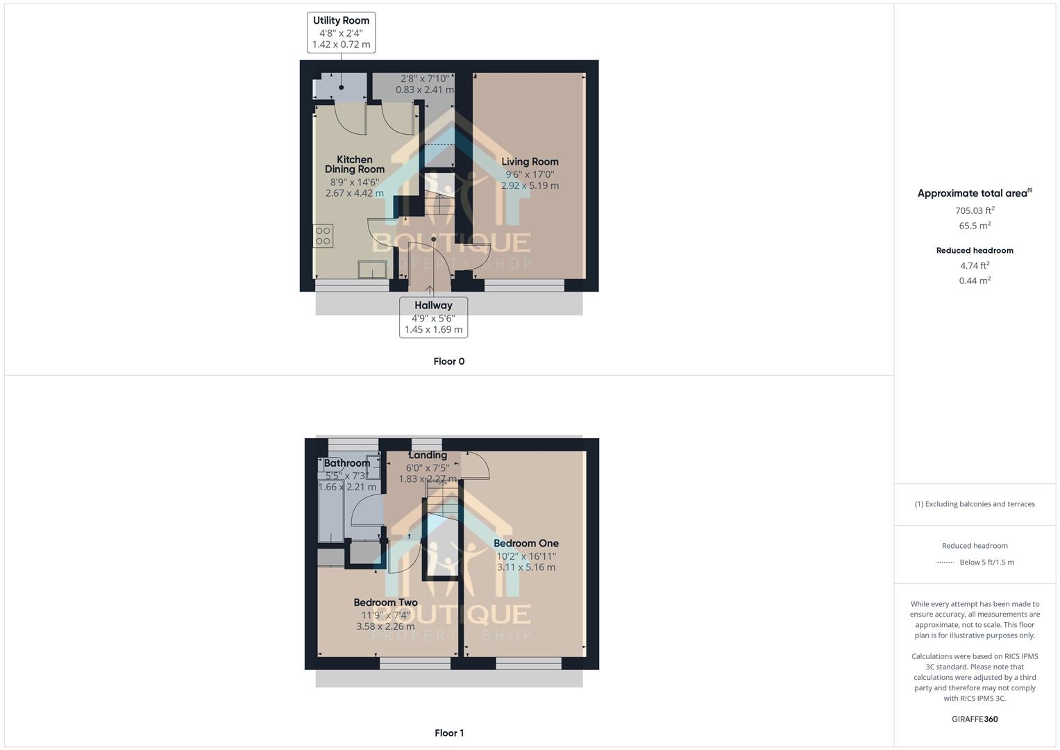 UPVC double glazed rear aspect window, panel bath with electric shower over, low flush WC, pedestal sink, glass storage cupboard over the sink, electric heated ladder towel rail. Storage/airing cupboard with water tank.
